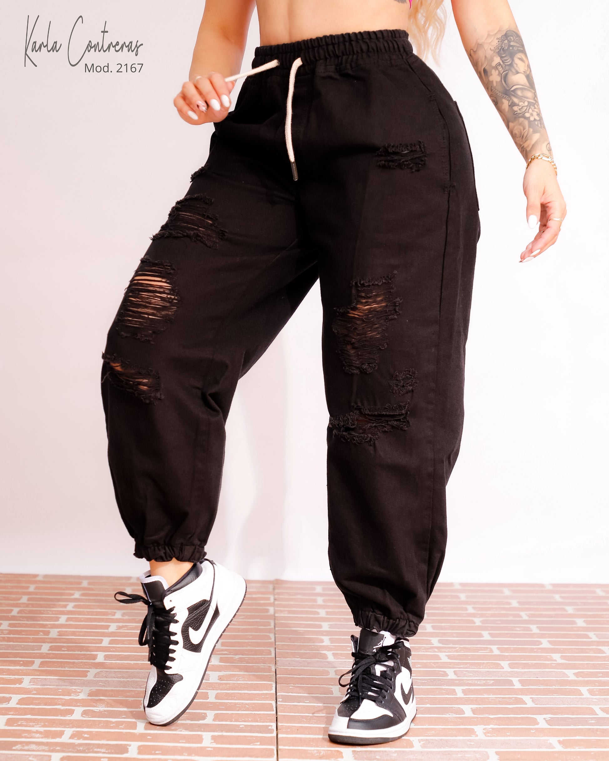 Jogger negro con roturas.